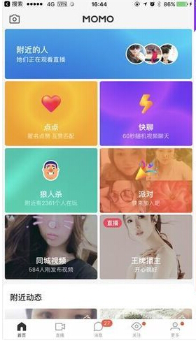 在最新一期的改版中,陌陌将“实时视频社交”版块放在了相当重要的位置上。