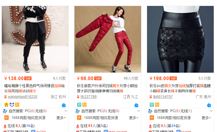 比如说消费者搜索“加绒裤女”,大家看下面那张图最吸引你?